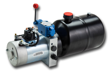 Cette unité de puissance a un circuit double action avec des ports A & B SAE#6 (9/16-18). Incluant une valve manuelle modulaire 3 positions / 4 voies (DO3), sans mcro-interrupteur intégré, qui peut être jumelée avec d'autres option modulaires tel qu'un clapet anti-retour piloté, un contrôleur de débit ou même une soupape de pression. Ce circuit utilise une valve anti-retour et une soupape de pression ajustable. La pompe à engrenage est équipée d'un grillage de succion attaché à un coude 90° à l'intérieur du réservoir. Celui-ci vient avec un bouchon-évent de 3/4" NPT.