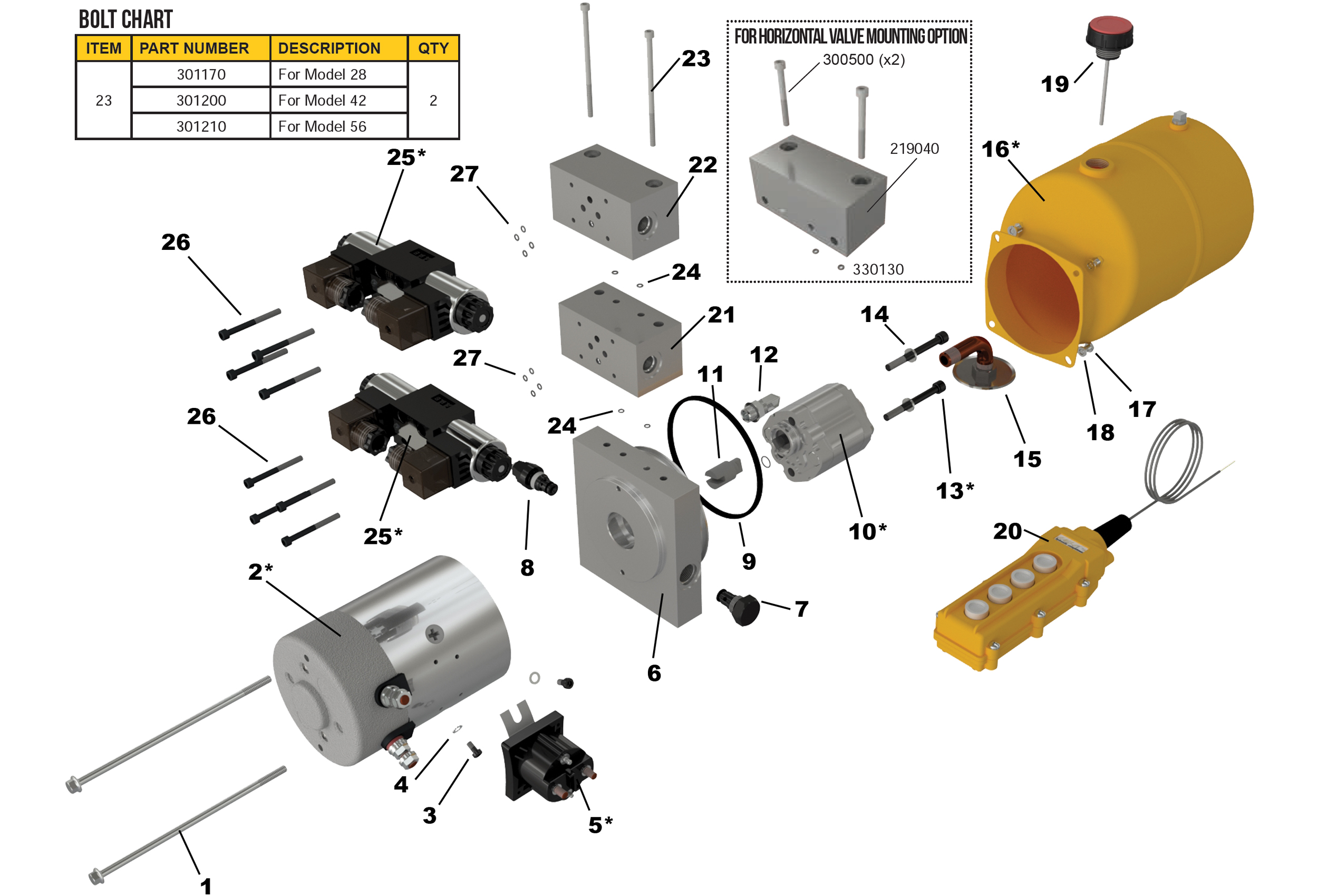 * les items tel que les moteurs, les pompes, les boulons de pompe, les solenoïdes et les réservoirs peuvent avoir des numéros de pièces différents dépendant des options et modèles choisis.