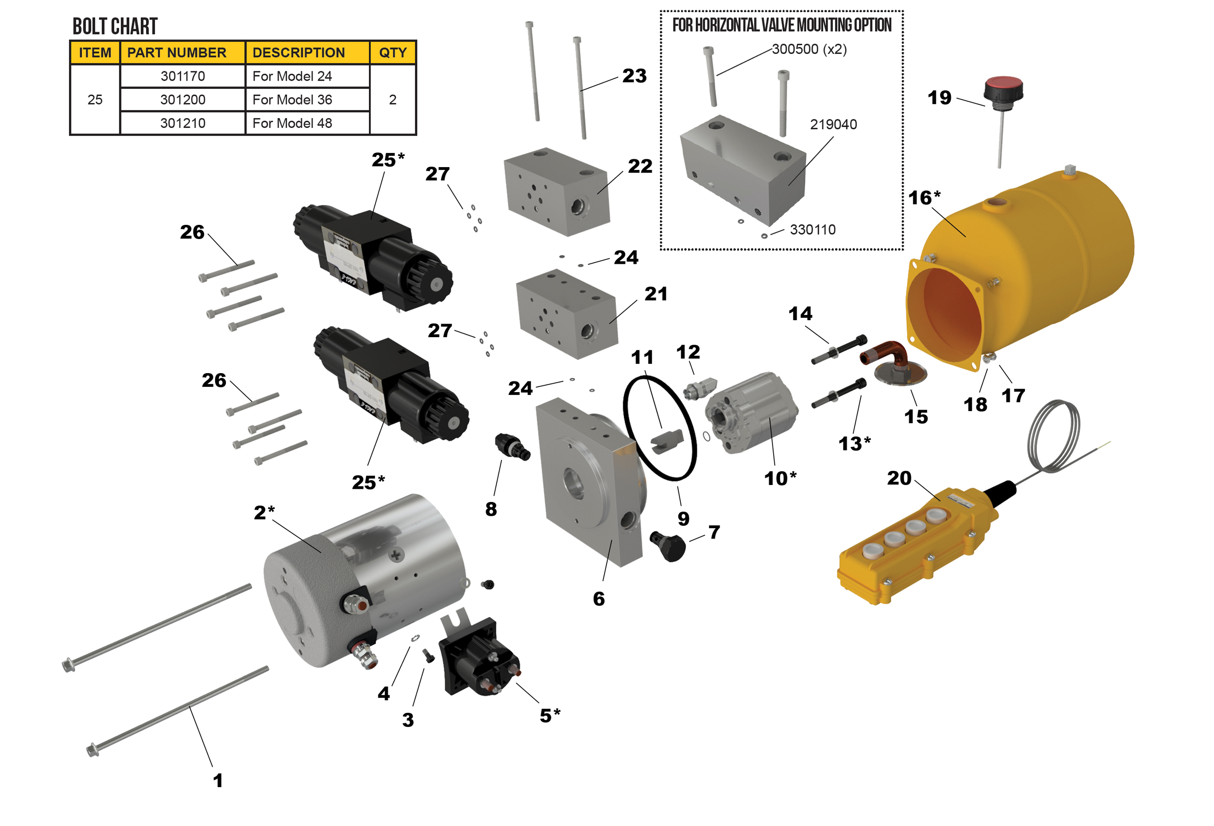 * les items tel que les moteurs, les pompes, les boulons de pompe, les solenoïdes et les réservoirs peuvent avoir des numéros de pièces différents dépendant des options et modèles choisis.